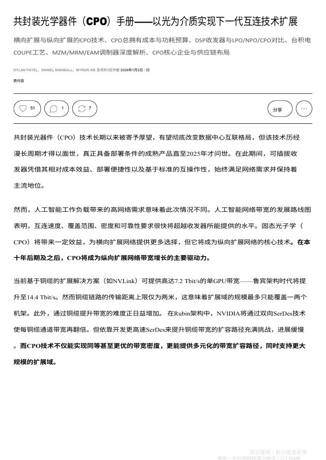 Dylan Patel:2026年共封装光学器件(CPO)手册-以光为介质实现下一代互连技术扩展报告.pdf
