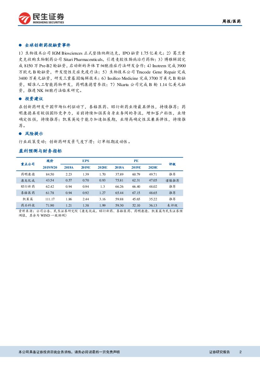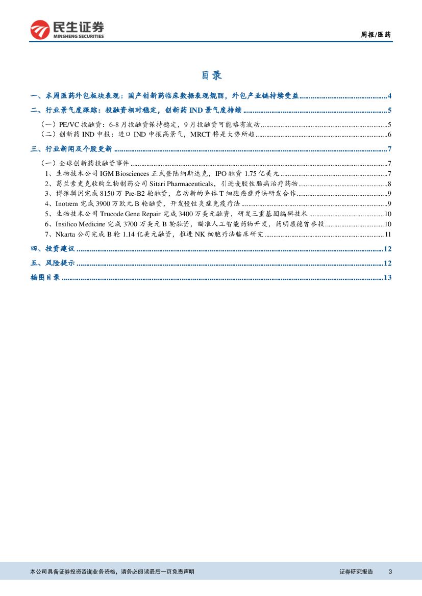 民生证券:民生医药外包行业周报:创新药临床数据表现靓丽,关注产业链机遇.pdf