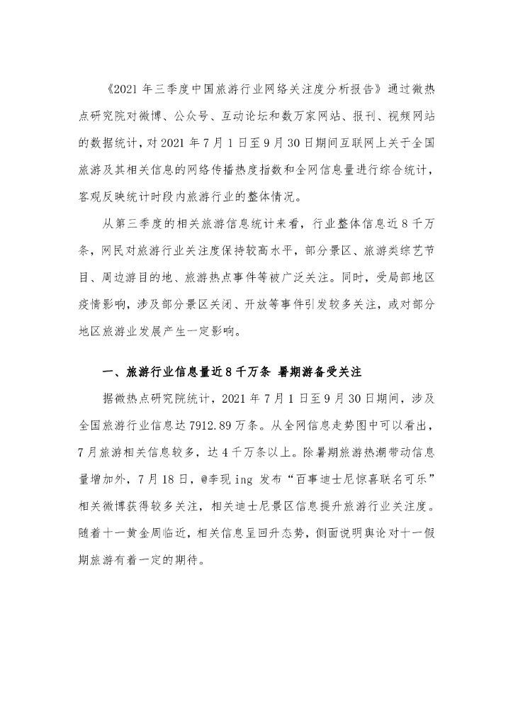 微热点研究院:2021年三季度中国旅游行业网络关注度分析报告.pdf