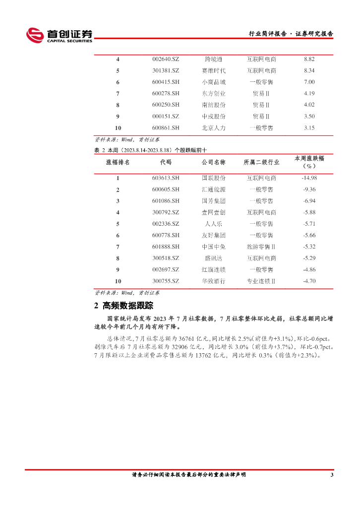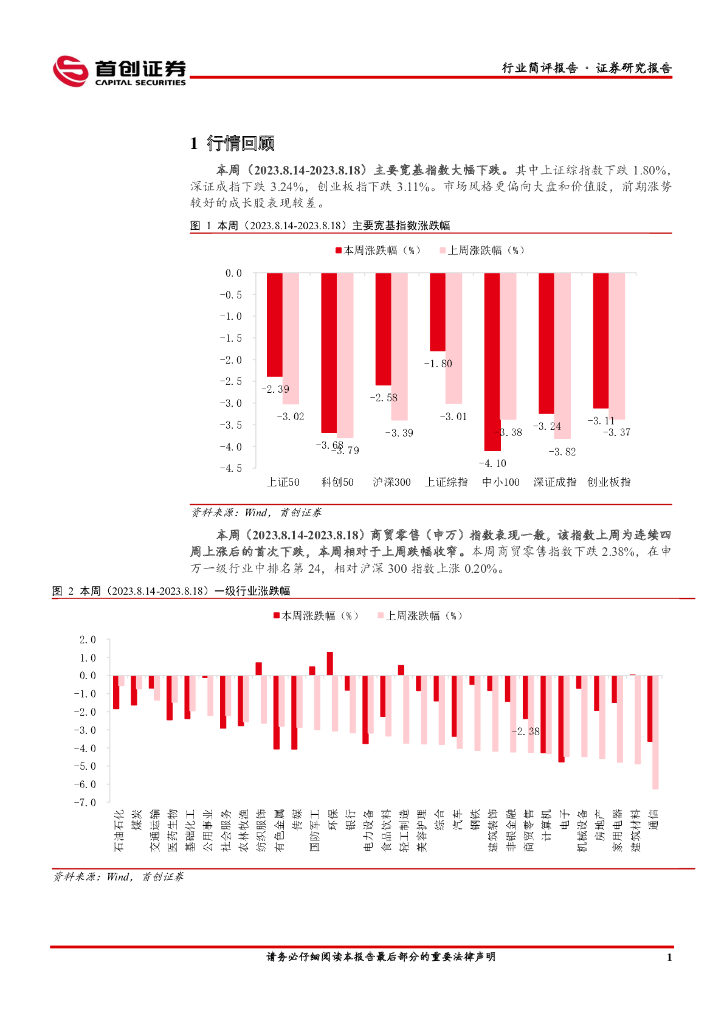 首创证券:商贸零售行业简评报告:市场情绪较差,社零走弱,餐饮持续恢复.pdf