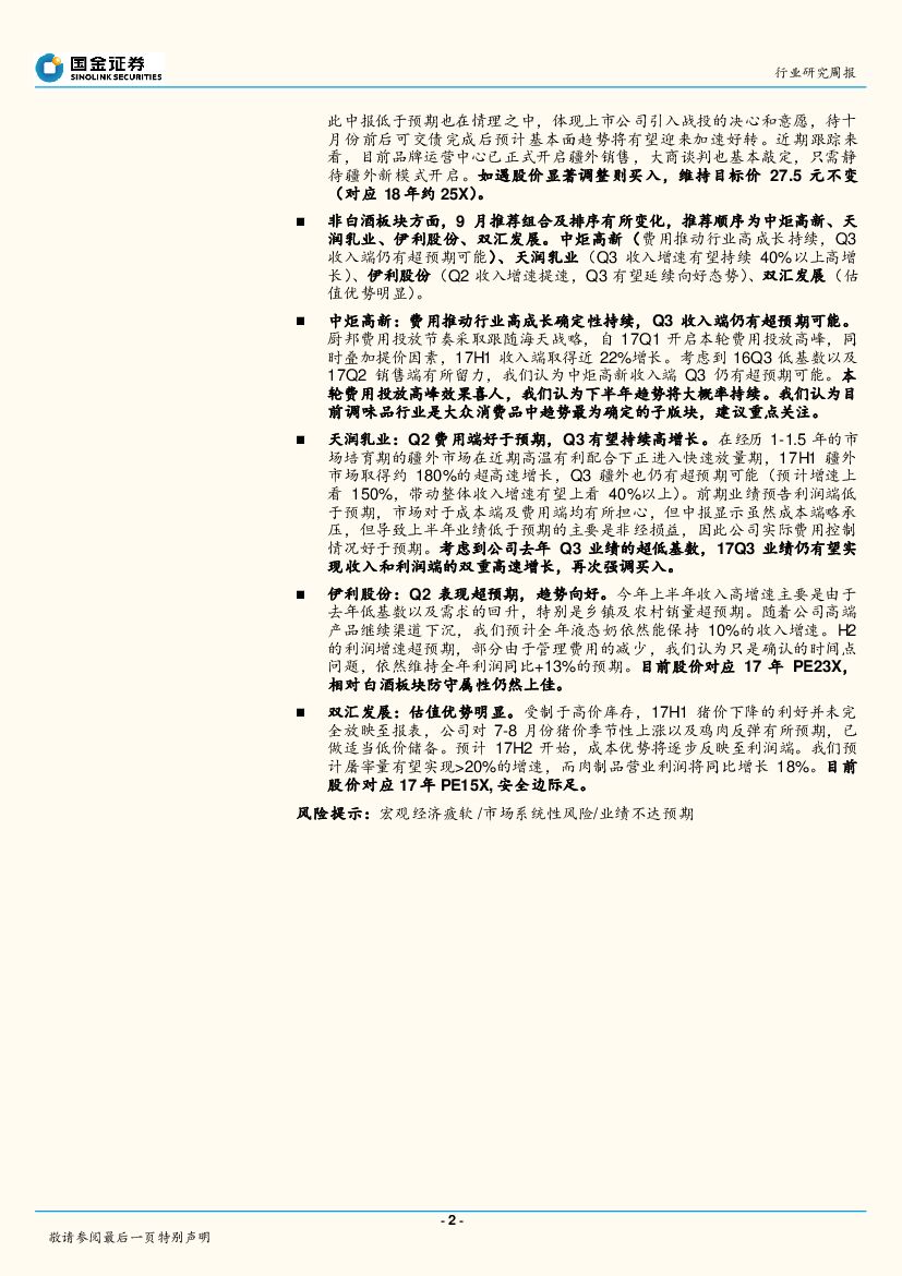 国金证券:食品饮料研究周报:中报行情后确定性为王,建议重点关注一线白酒及调味品板块.pdf