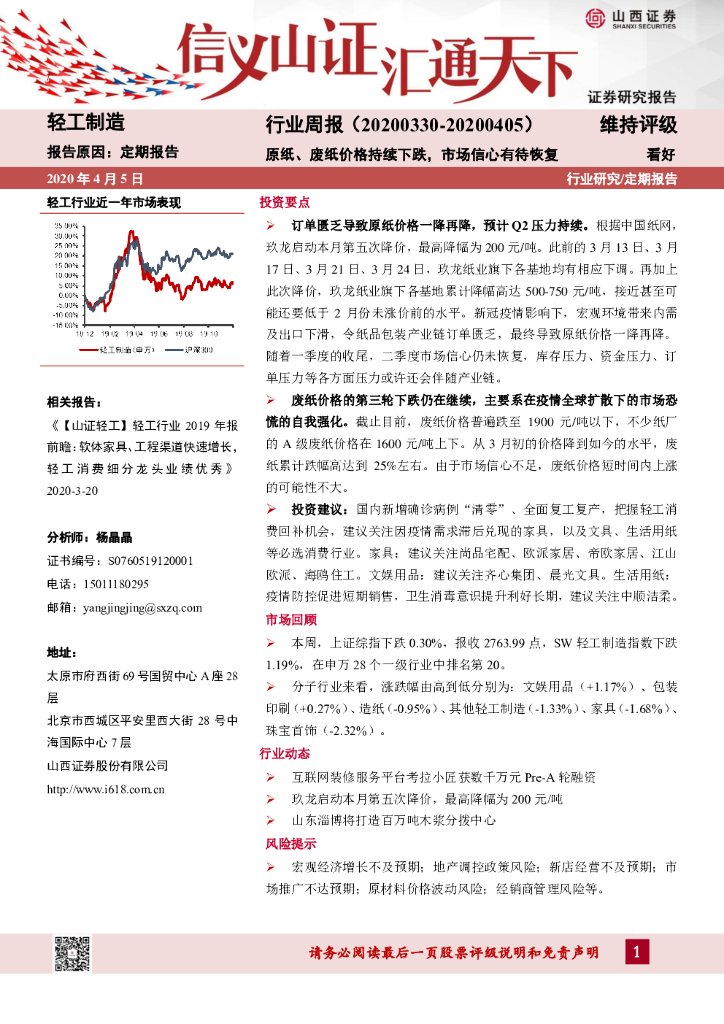 山西证券:轻工制造行业周报:原纸、废纸价格持续下跌,市场信心有待恢复.pdf