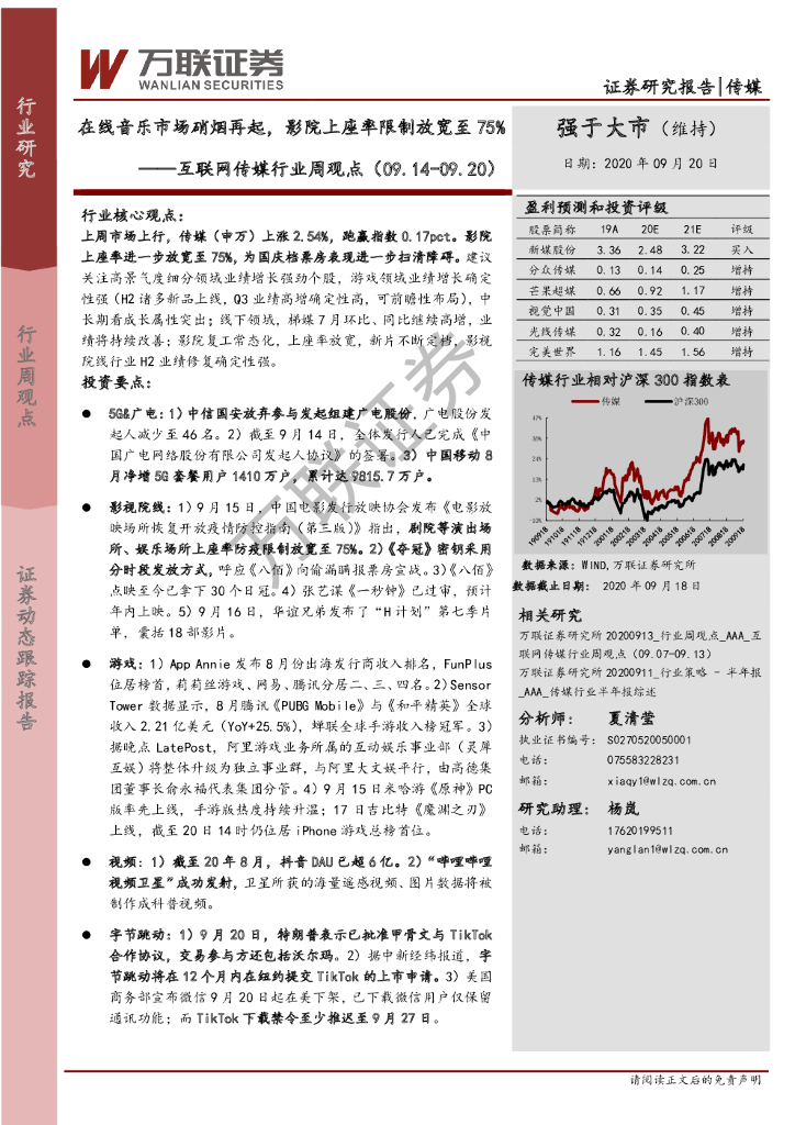 万联证券:互联网传媒行业周观点:在线音乐市场硝烟再起,影院上座率限制放宽至75%.pdf