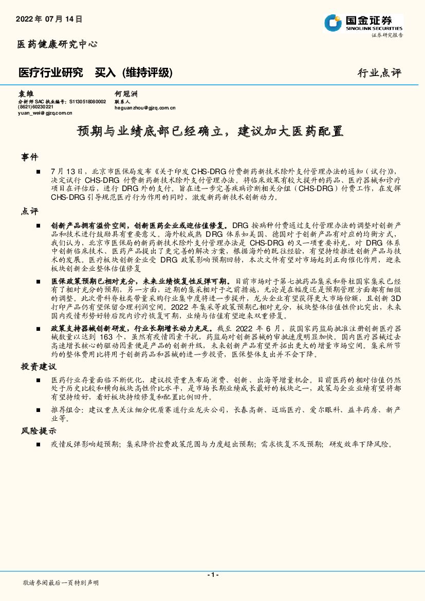 国金证券:医疗行业研究:预期与业绩底部已经确立,建议加大医药配置.pdf