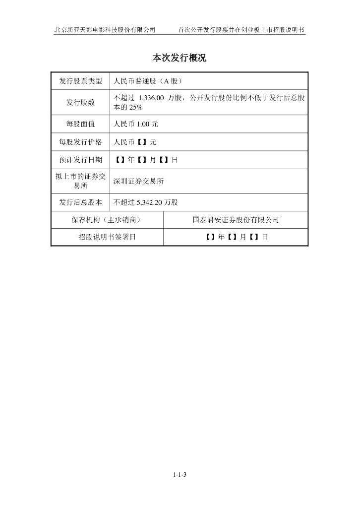 北京新亚天影电影科技股份有限公司深交所创业板IPO上市招股说明书.pdf