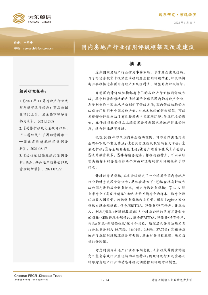 远东资信:国内房地产行业信用评级框架及改进建议.pdf