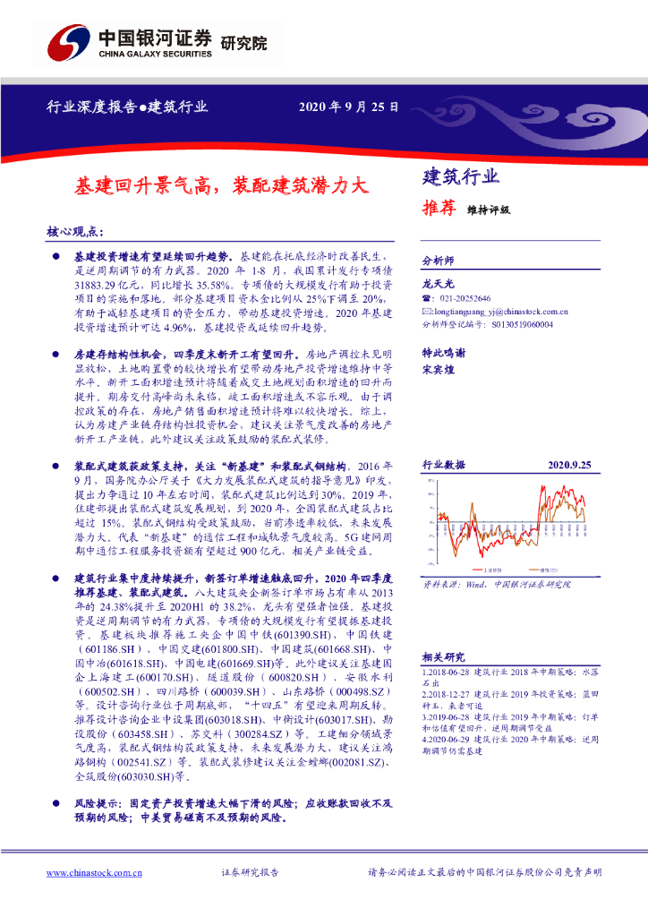中国银河:建筑行业深度报告:基建回升景气高,装配建筑潜力大.pdf