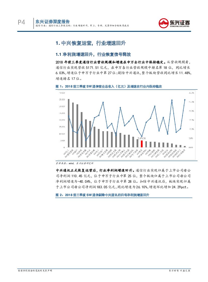 东兴证券:通信行业深度报告:通信行业三季报总结-行业增速回升,军工、专网、光器件细分板块高成长.pdf