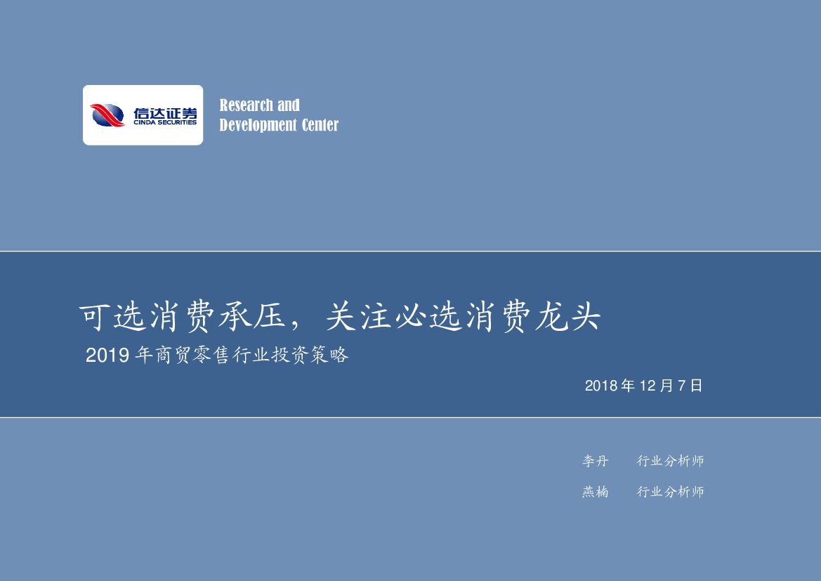 信达证券:2019年商贸零售行业投资策略:可选消费承压,关注必选消费龙头.pdf