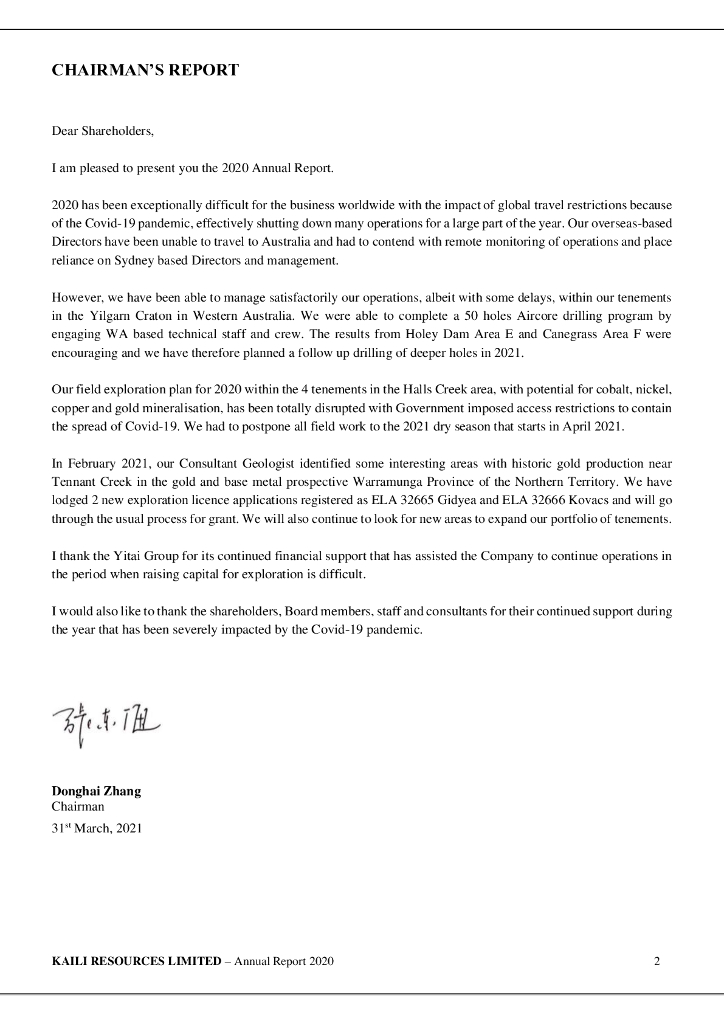 Kaili Resources Limited(KLR)2020财年年度报告(英文版).pdf