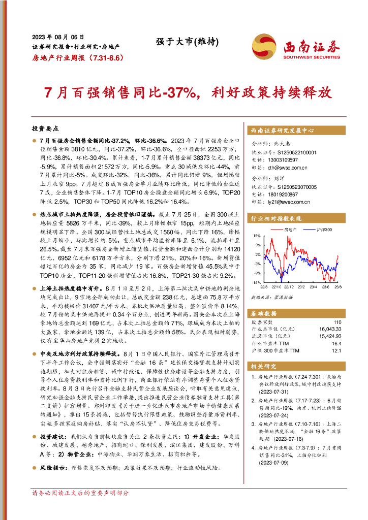 西南证券:房地产行业周报:7月百强销售同比-37%,利好政策持续释放.pdf