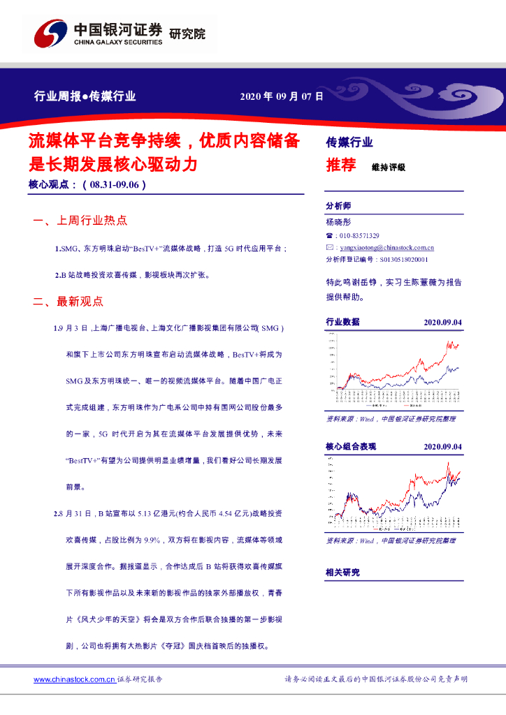 中国银河:传媒行业周报:流媒体平台竞争持续,优质内容储备是长期发展核心驱动力.pdf