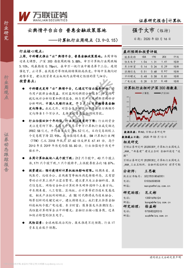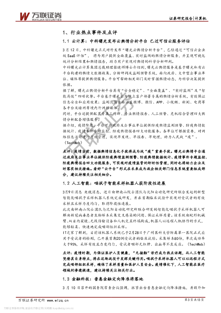 万联证券:计算机行业周观点:云舆情平台出台 普惠金融政策落地.pdf
