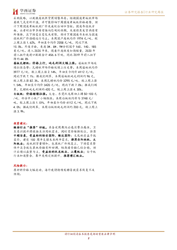 华西证券:造纸行业数据跟踪报告:包装纸涨价情绪浓厚,继续看好文化纸后续行情.pdf