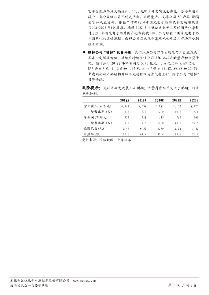 中原证券:光迅科技(002281)-中报点评:业绩超预期,光芯片龙头稀缺性凸显.pdf