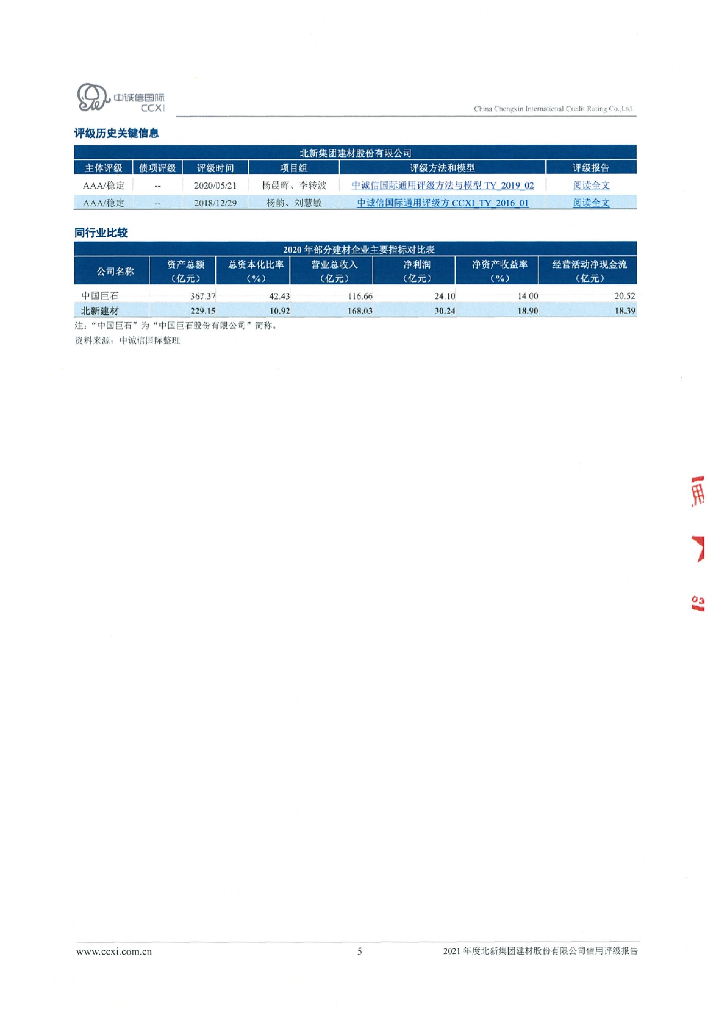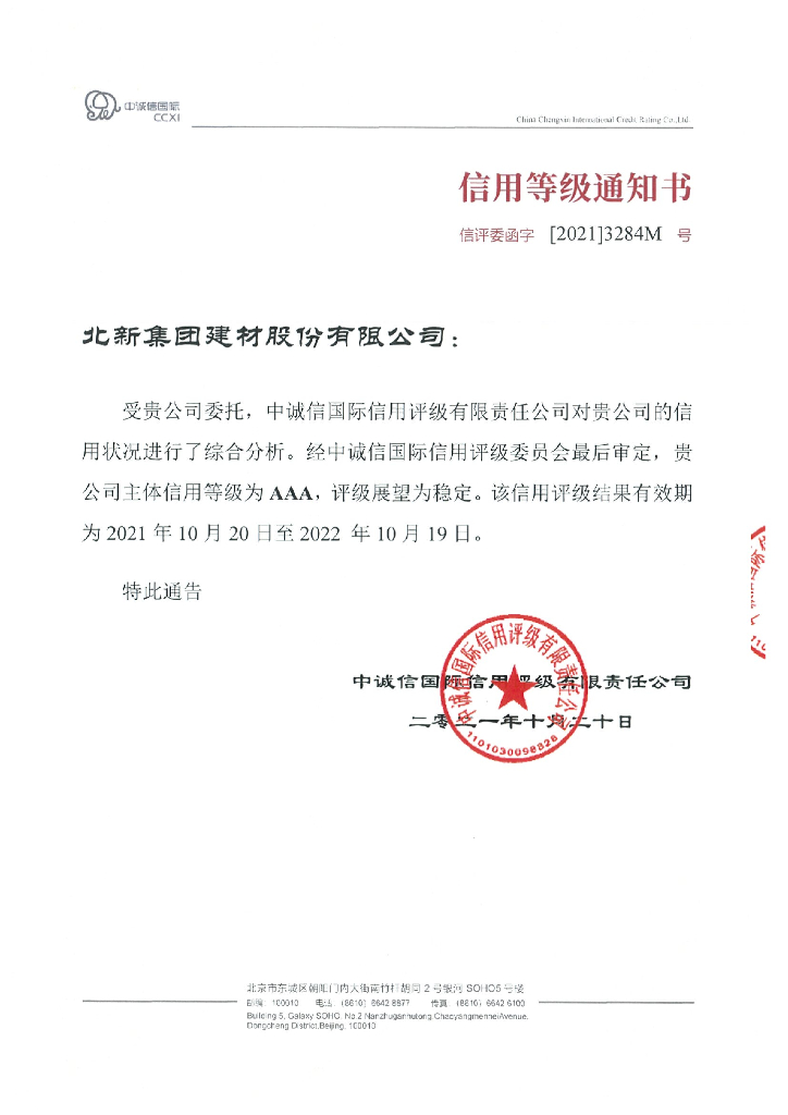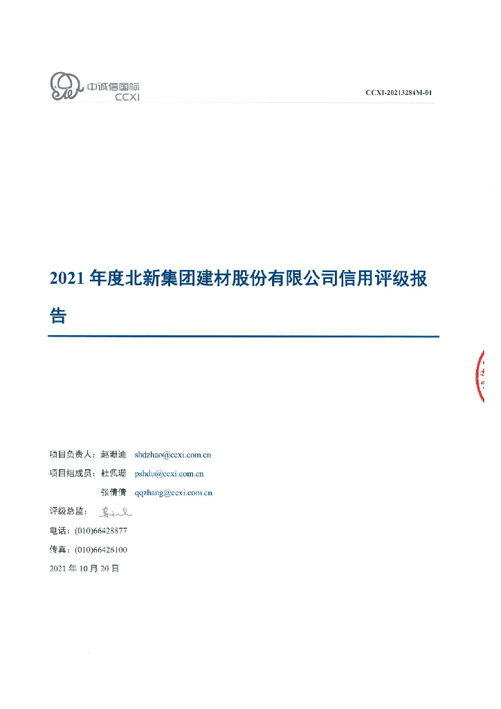 中诚信:北新集团建材股份有限公司主体信用评级报告及跟踪评级安排.pdf