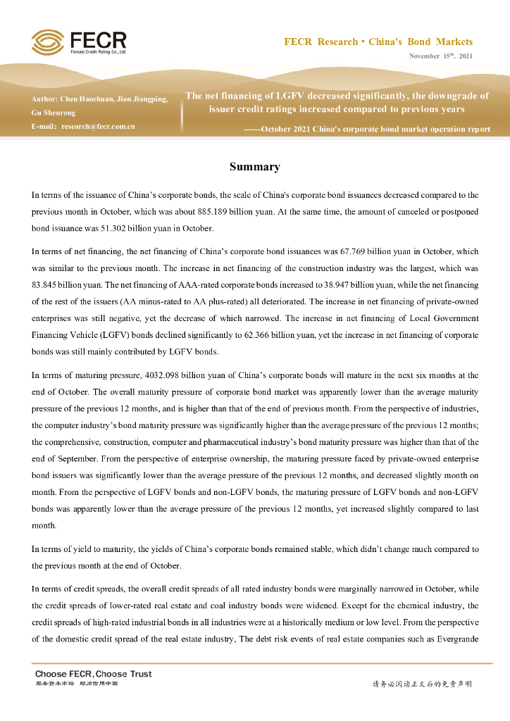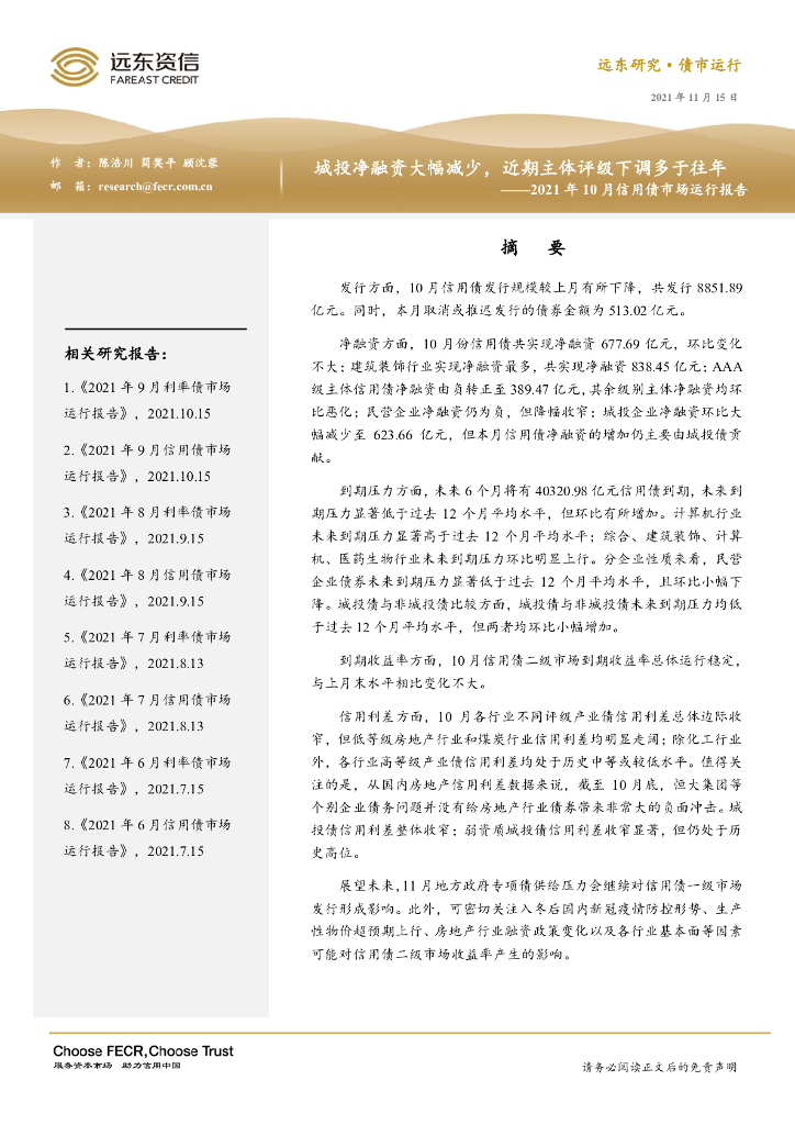 远东资信:2021年10月信用债市场运行报告:城投净融资大幅减少,近期主体评级下调多于往年.pdf