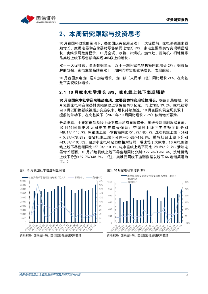 国信证券:家电行业周报(24年第46周):10月家电社零增长39%,双十一家电销售表现突出.pdf