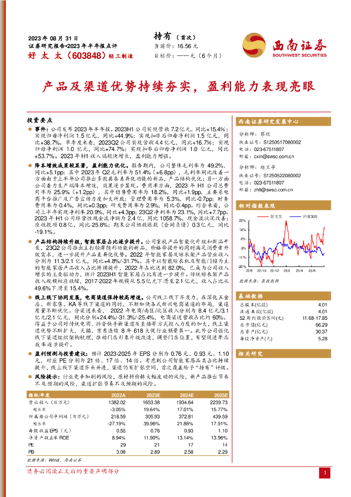 西南证券:好太太(603848)-产品及渠道优势持续夯实,盈利能力表现亮眼.pdf