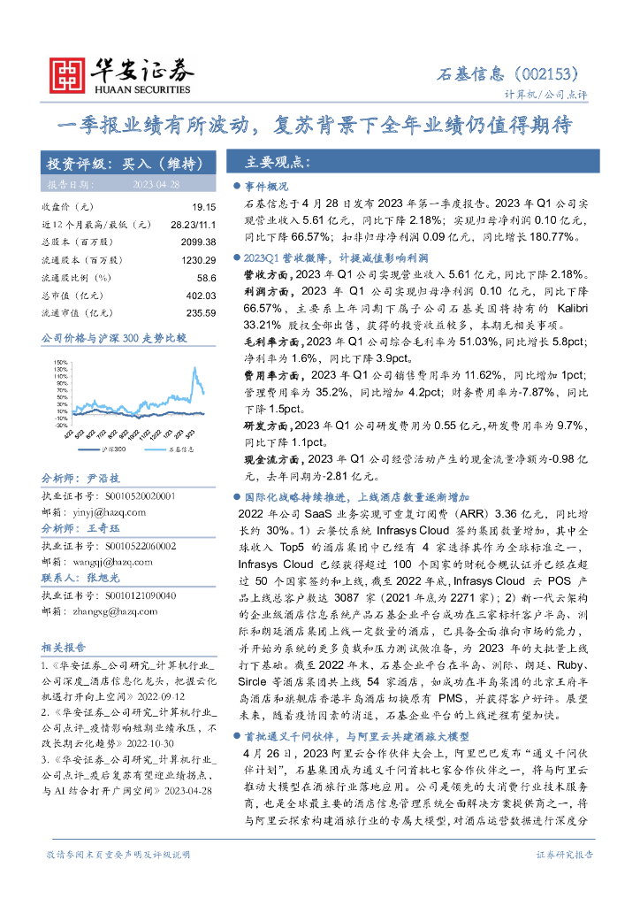 华安证券:石基信息(002153)-一季报业绩有所波动,复苏背景下全年业绩仍值得期待.pdf