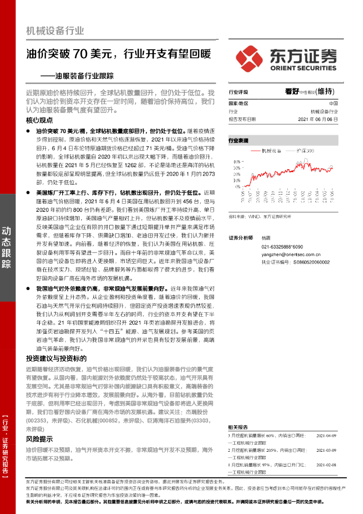 东方证券:油服装备行业跟踪:油价突破70美元,行业开支有望回暖.pdf