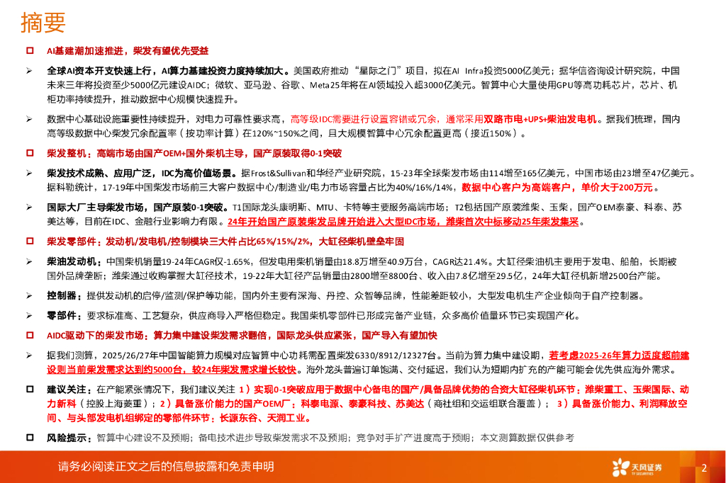 天风证券:机械设备行业深度研究:AIDC备用电源—AIDC集中建设柴发机组需求空间高增,重视国内核心厂商0-1机会.pdf