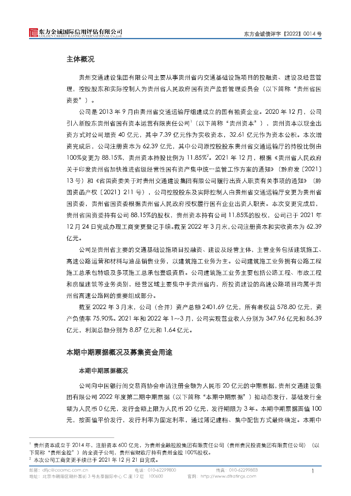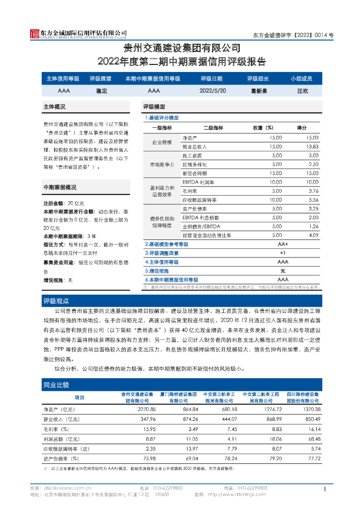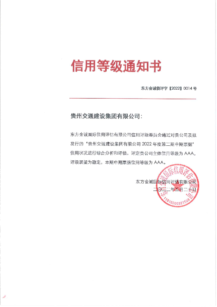 东方金诚:贵州交通建设集团有限公司2022年度第二期中期票据信用评级报告.pdf