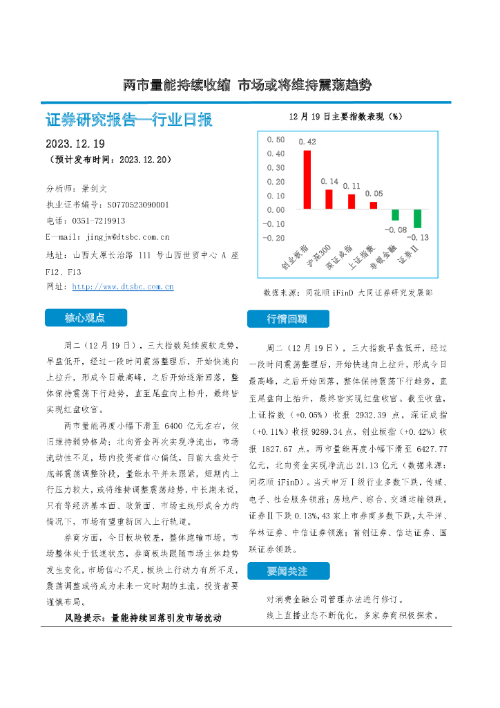 大同证券:非银金融行业日报:两市量能持续收缩 市场或将维持震荡趋势.pdf