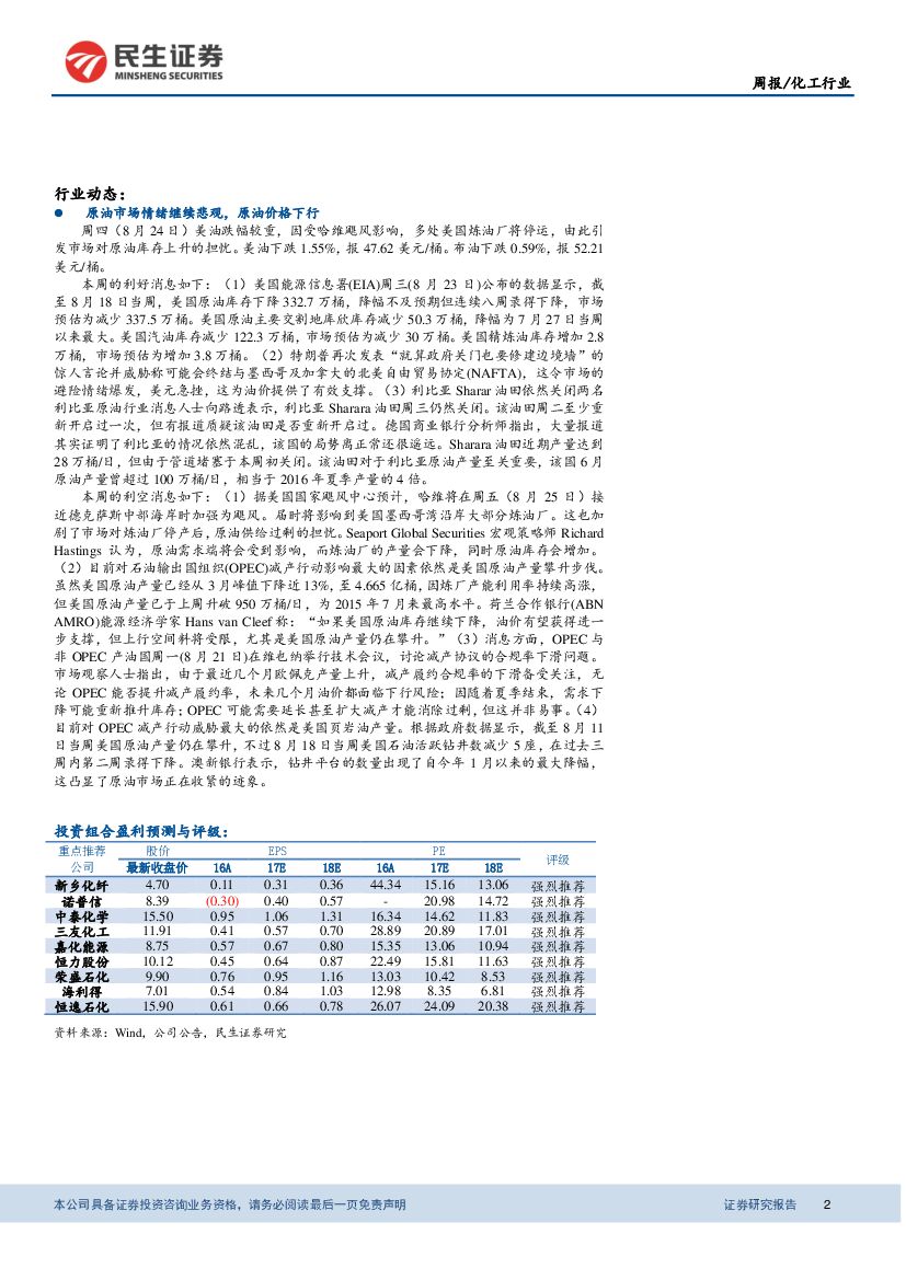 民生证券:化工行业周报:聚氨酯产业链回落,化纤板块反弹,塑料普涨.pdf