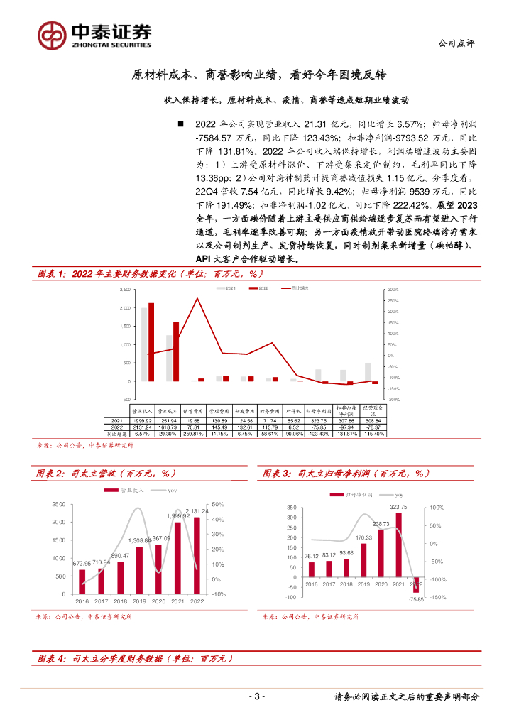 中泰证券:司太立(603520)-原材料成本、商誉影响业绩,看好今年困境反转.pdf