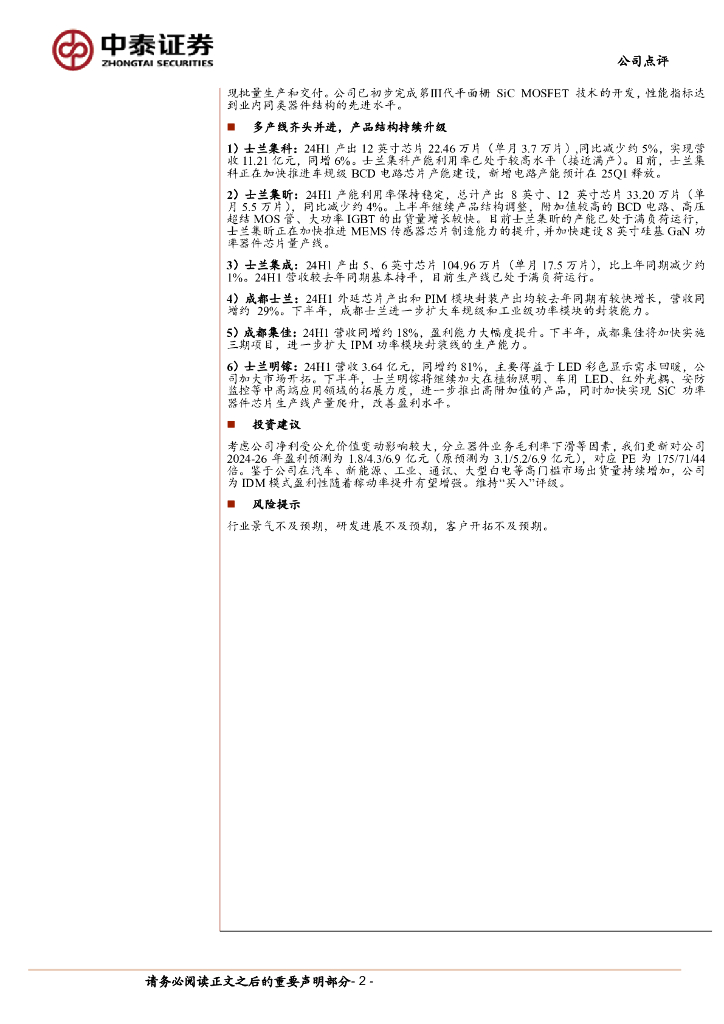 中泰证券:士兰微:24Q2营收环比增长,SiC产能快速落地.pdf
