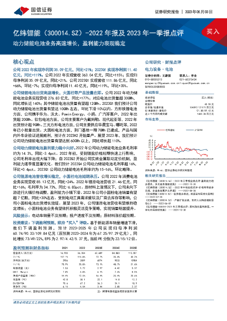 国信证券:亿纬锂能(300014)-2022年报及2023年一季报点评:动力储能电池业务高速增长,盈利能力表现稳定.pdf