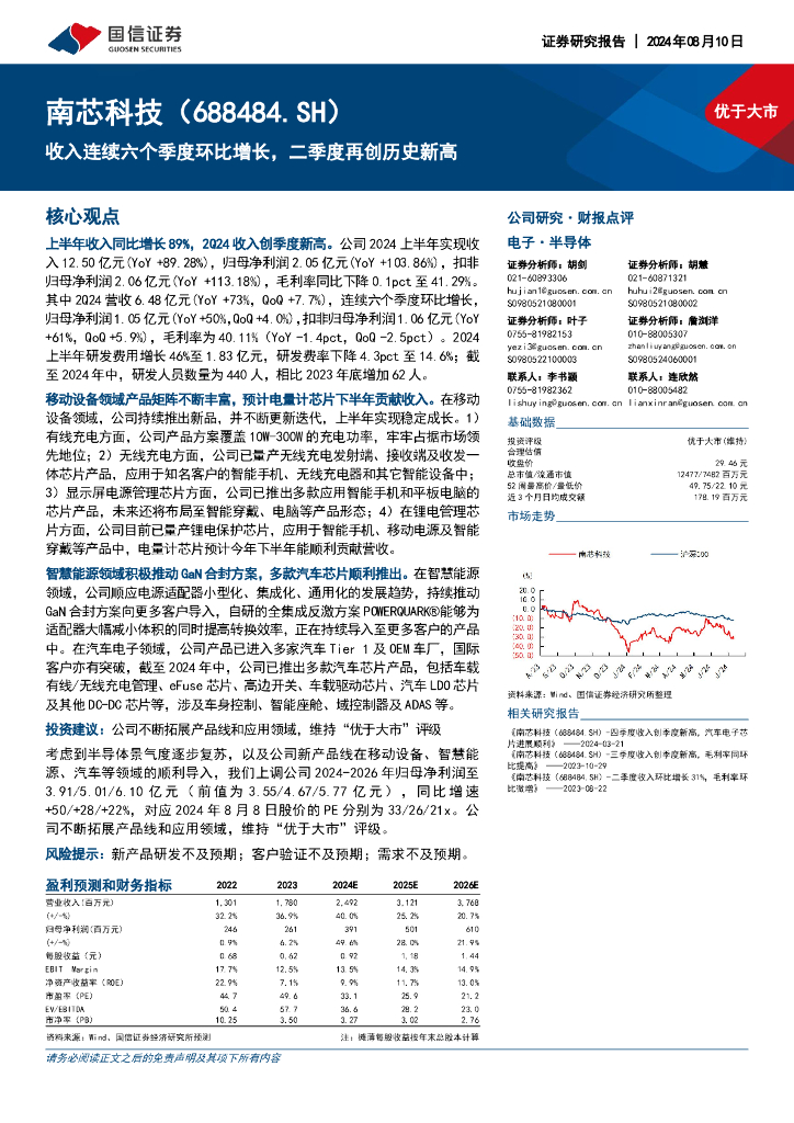 国信证券:南芯科技(688484)-收入连续六个季度环比增长,二季度再创历史新高.pdf