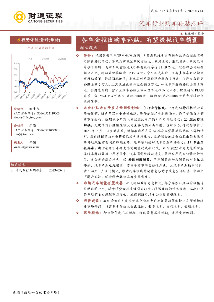 财通证券:汽车行业购车补贴点评:各车企推出购车补贴,有望提振汽车销量.pdf