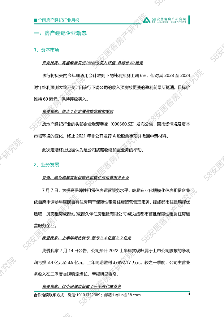 58安居客房产研究院:2022年7月全国房地产经纪行业月报.pdf