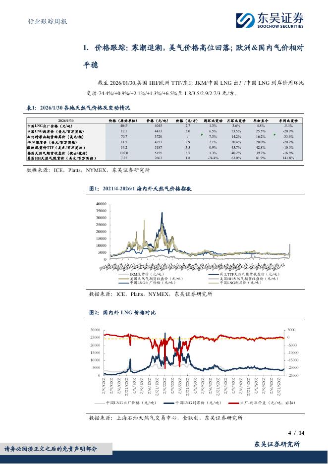 东吴证券:燃气Ⅱ行业跟踪周报:寒潮退潮,美气价格高位回落;欧洲&国内气价相对平稳.pdf