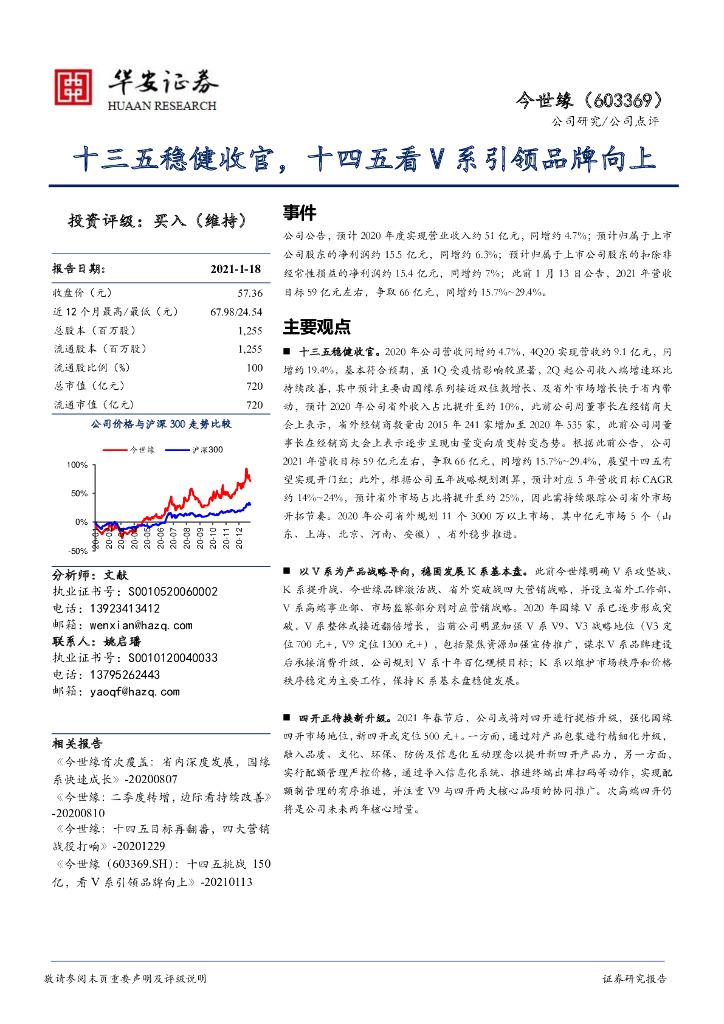 华安证券:今世缘(603369)-十三五稳健收官,十四五看V系引领品牌向上.pdf