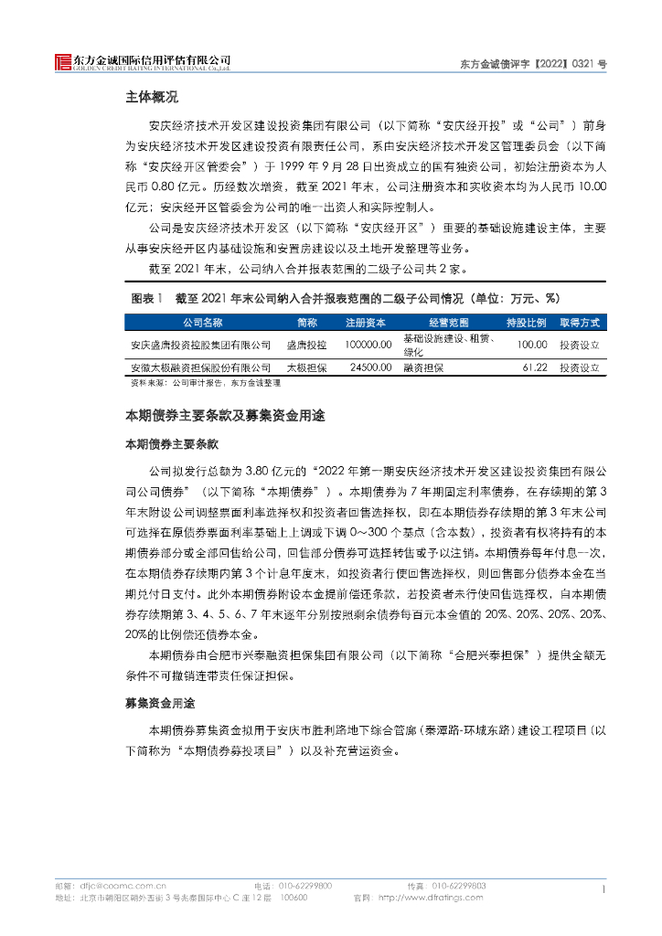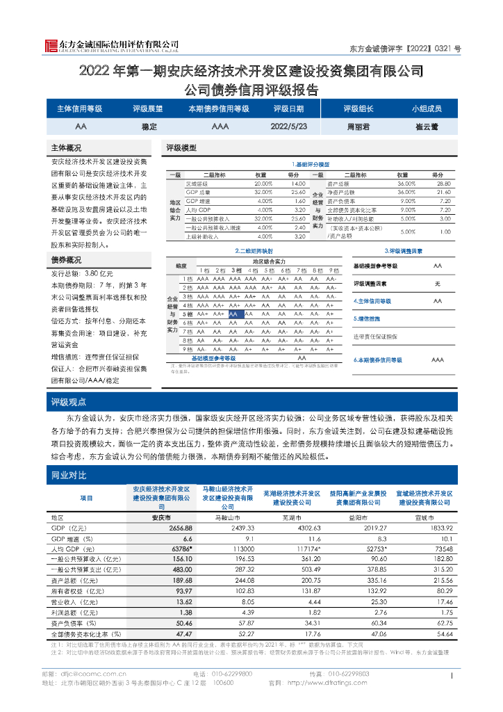 东方金诚:2022年第一期安庆经济技术开发区建设投资集团有限公司公司债券信用评级报告.pdf