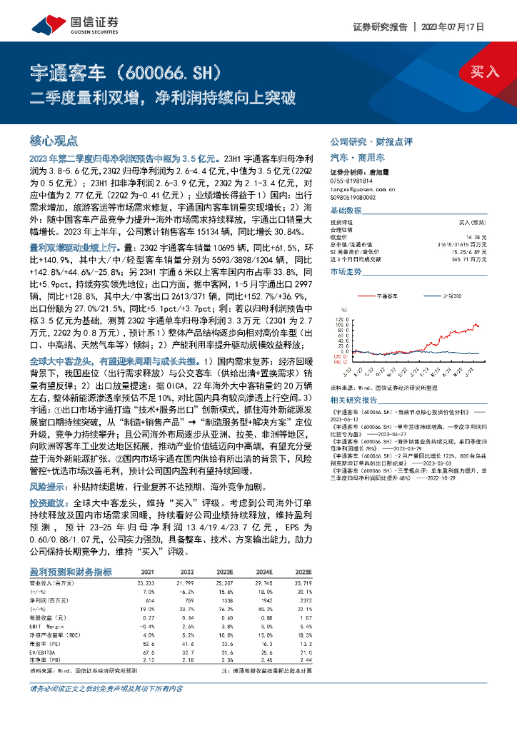 国信证券:宇通客车(600066)-二季度量利双增,净利润持续向上突破.pdf