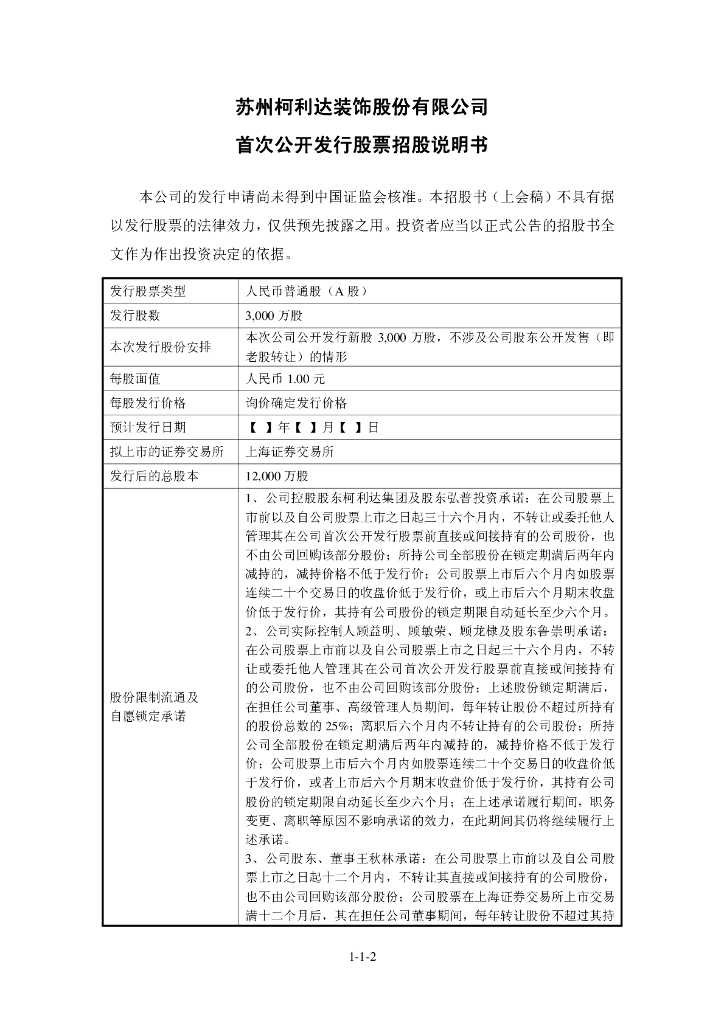 苏州柯利达装饰股份有限公司上交所主板IPO上市招股说明书.pdf