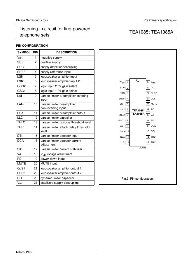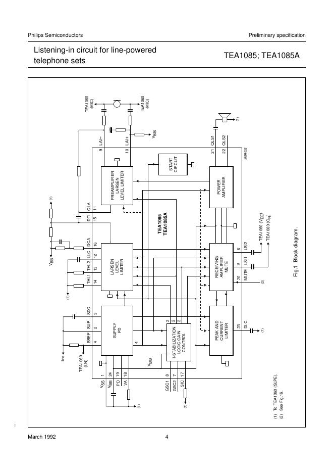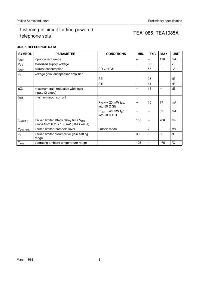 PHILIPS TEA1085; TEA1085A Listening-in circuit for line-powered telephone sets 数据手册.pdf
