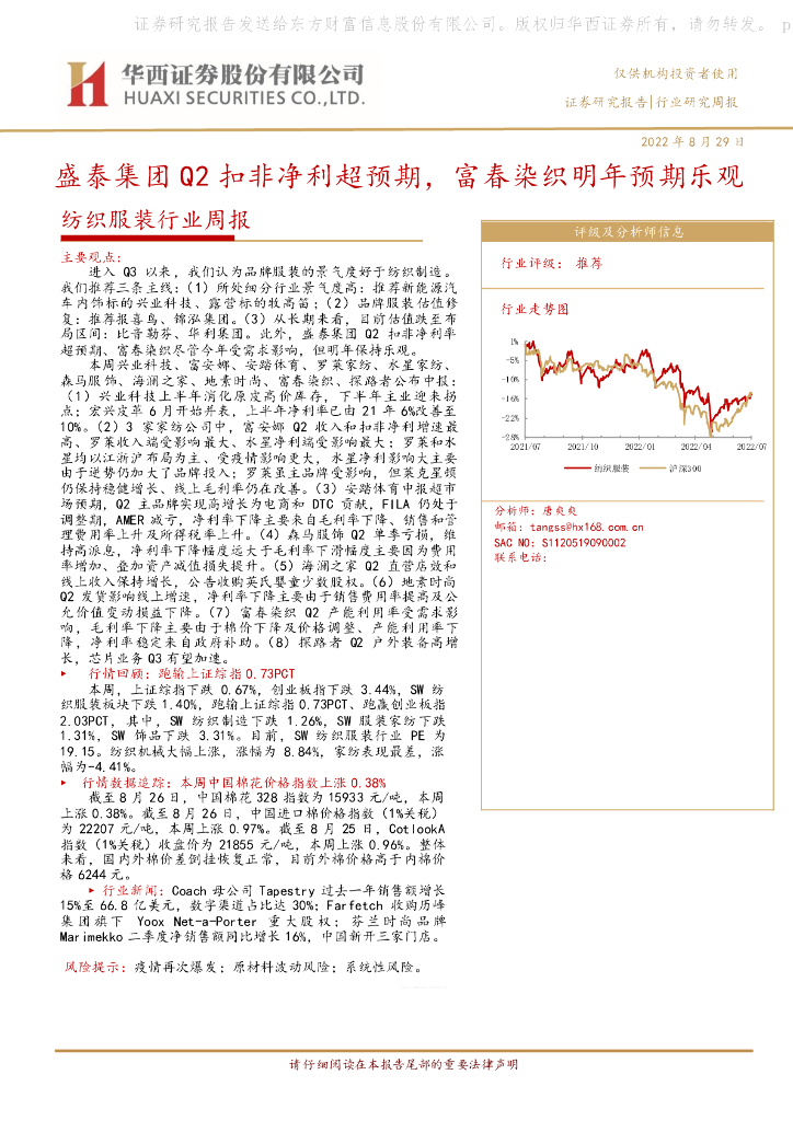华西证券:纺织服装行业周报:盛泰集团Q2扣非净利超预期,富春染织明年预期乐观.pdf