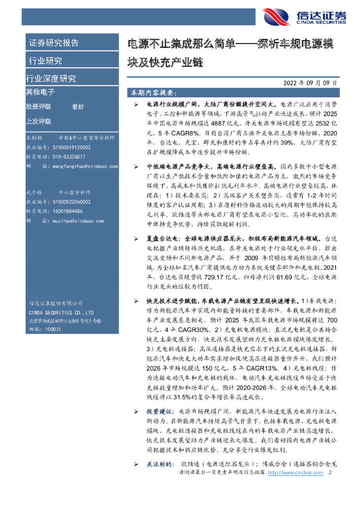 信达证券:电源不止集成那么简单——探析车规电源模块及快充产业链.pdf