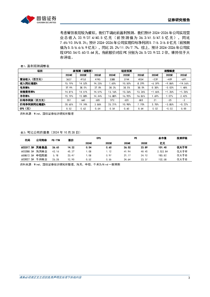 国信证券:天味食品(603317)-第三季度收入同比增长10.9%,渠道协同布局逐渐完善.pdf