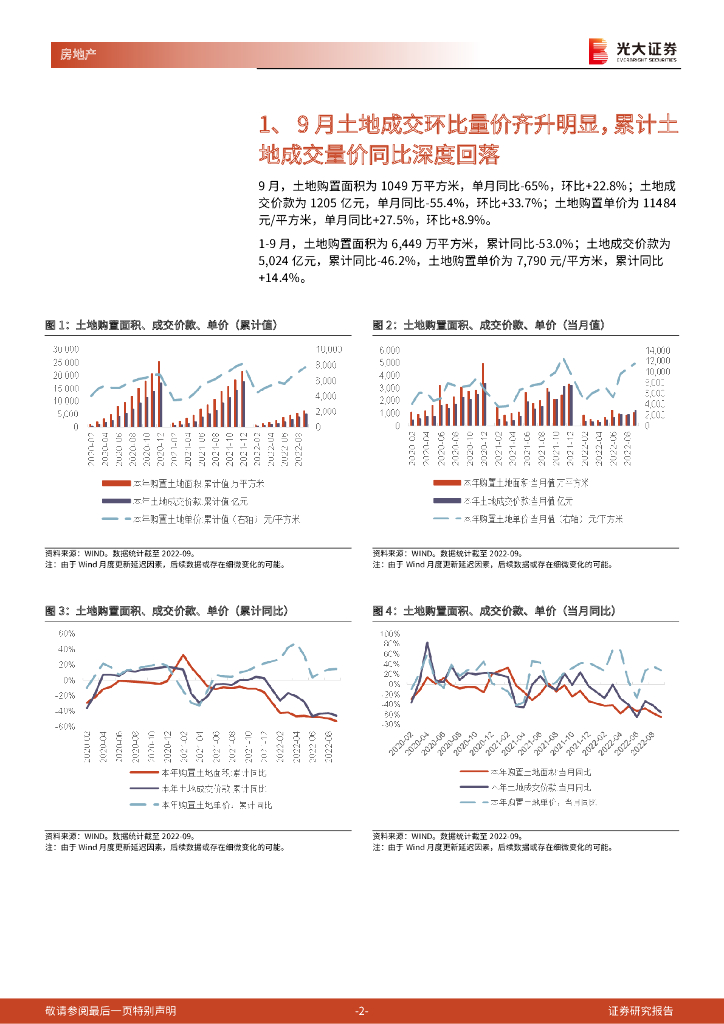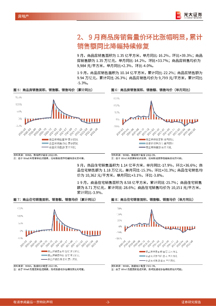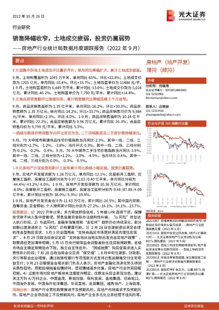 光大证券:房地产行业统计局数据月度跟踪报告(2022年9月):销售降幅收窄,土地成交疲弱,投资仍属弱势.pdf