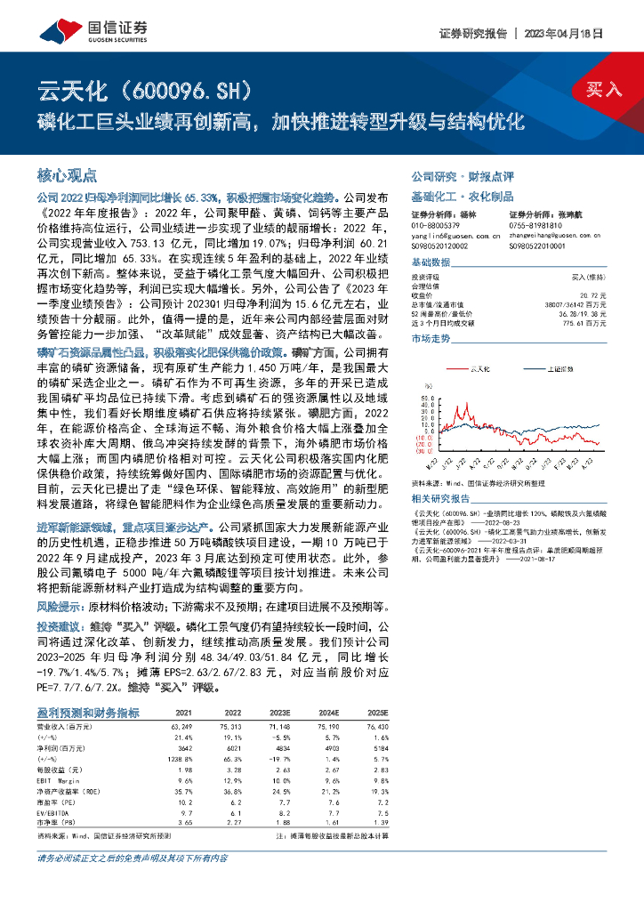 国信证券:云天化(600096)-磷化工巨头业绩再创新高,加快推进转型升级与结构优化.pdf