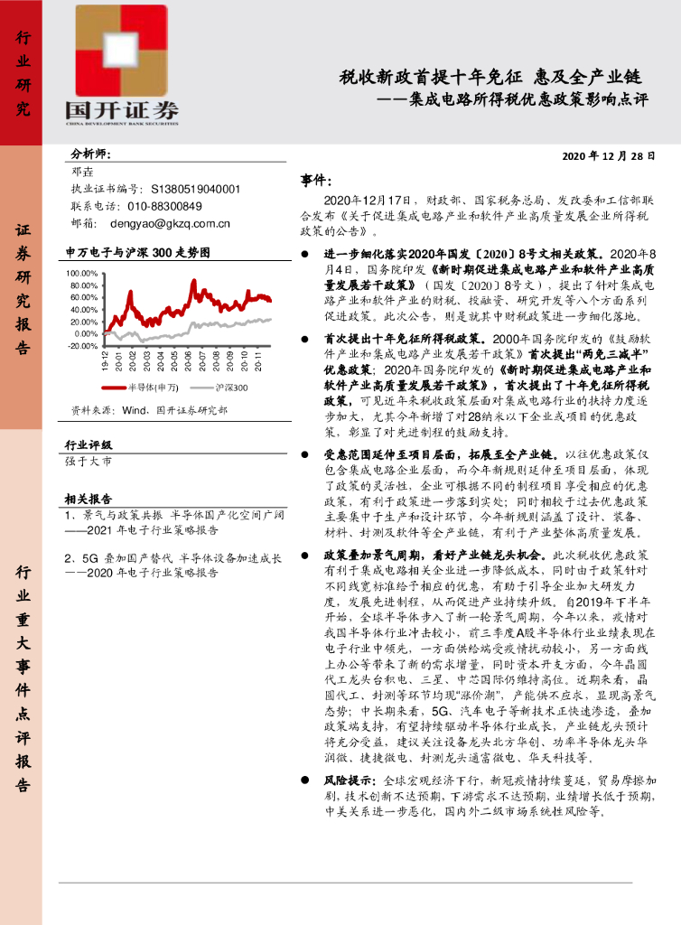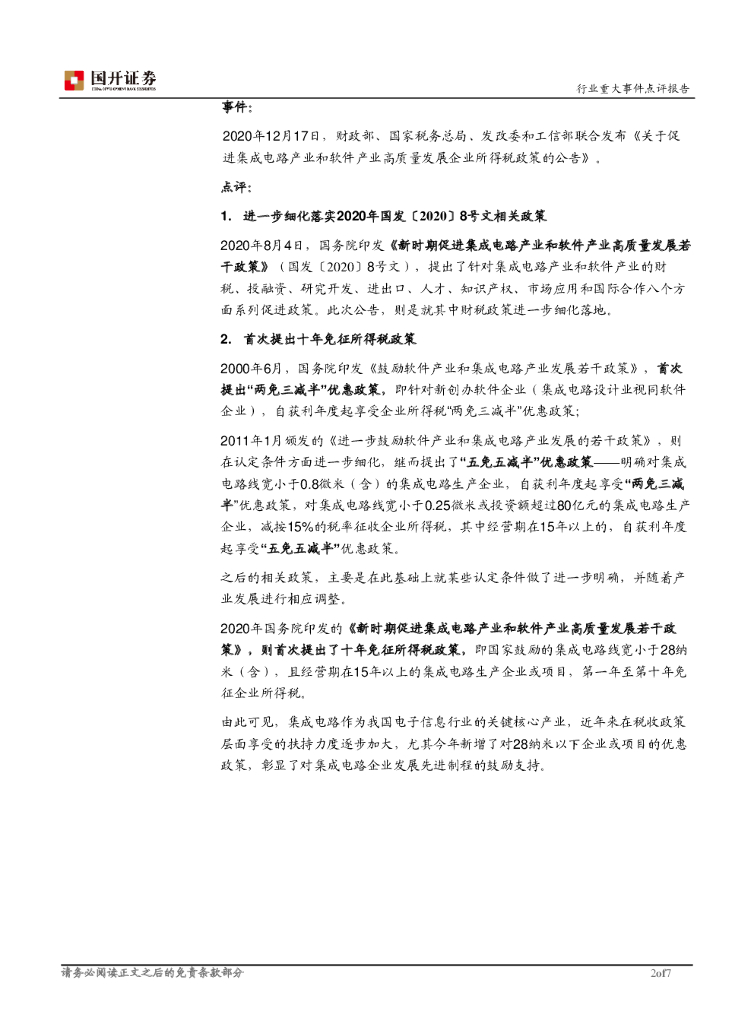 国开证券:电子行业:集成电路所得税优惠政策影响点评-税收新政首提十年免征 惠及全产业链.pdf
