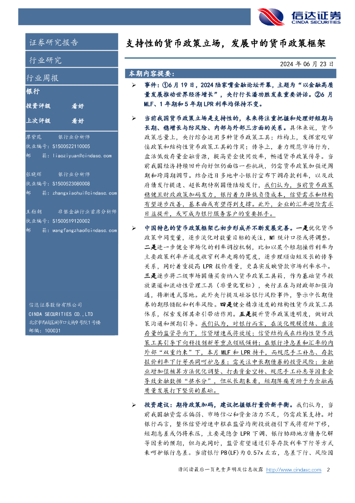 信达证券:支持性的货币政策立场,发展中的货币政策框架银行.pdf