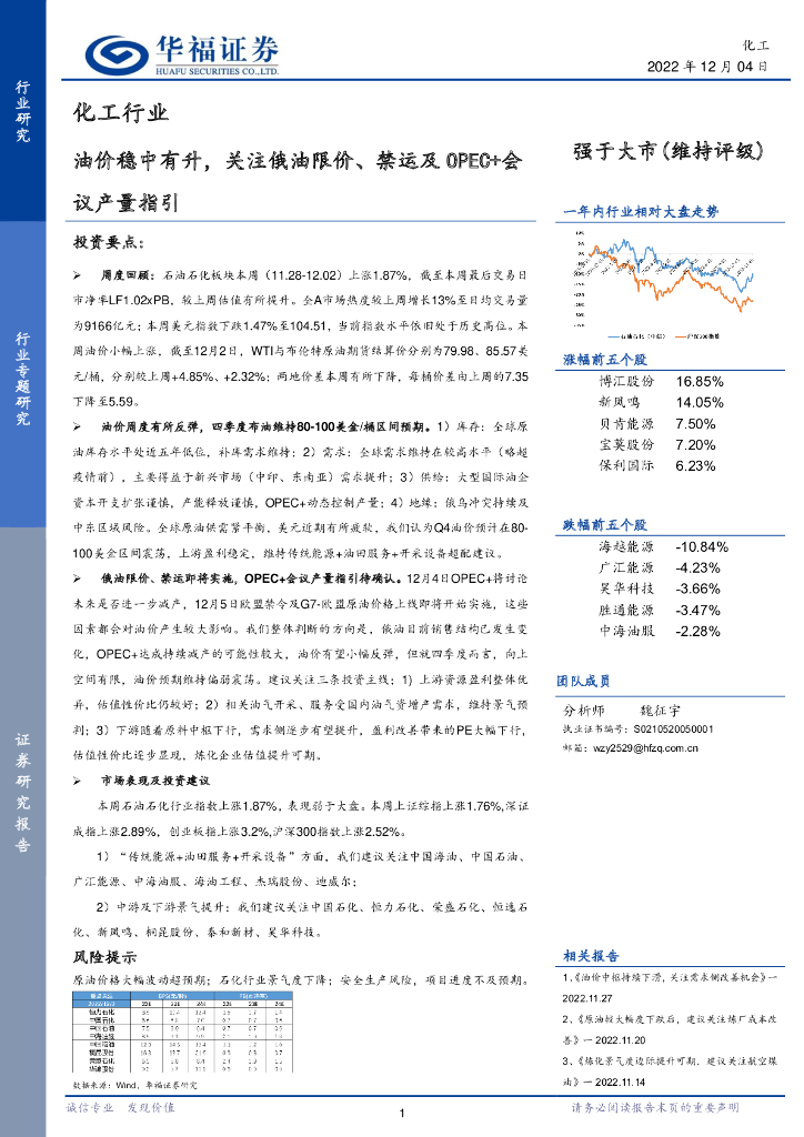 华福证券:化工行业:油价稳中有升,关注俄油限价、禁运及OPEC+会议产量指引.pdf