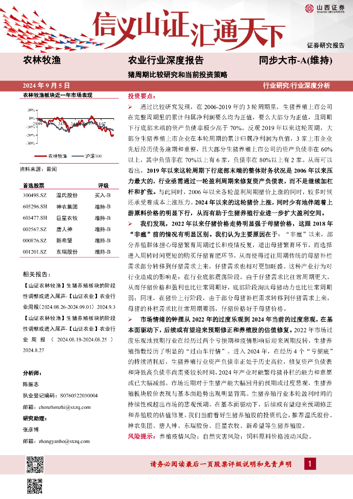 山西证券:农业行业深度报告:猪周期比较研究和当前投资策略.pdf